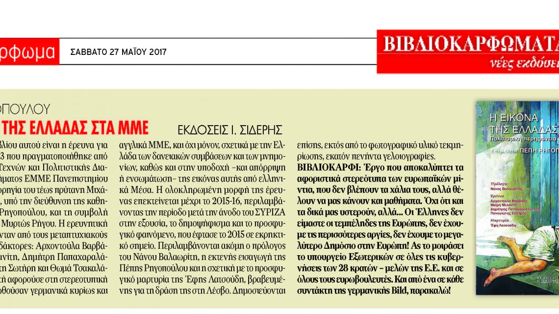 Continue reading... Βιβλιοκαρφώματα | Πέπη Ρηγοπούλου 29/05/2017 – Posted in: Τα νέα μας Continue reading