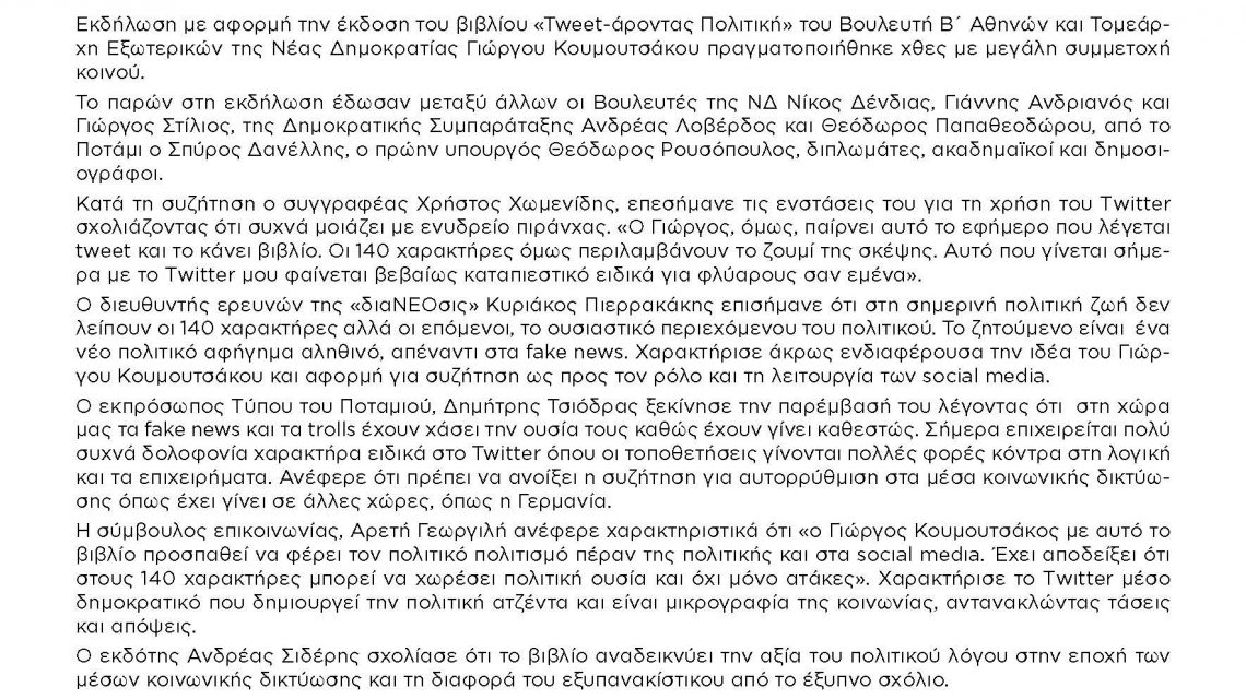 ΔΕΛΤΙΟ ΤΥΠΟΥ με αφορμή την εκδήλωση για το ΝΕΟ βιβλίο του Γιώργου Κουμουτσάκου 23/06/2017 – Posted in: Τα νέα μας