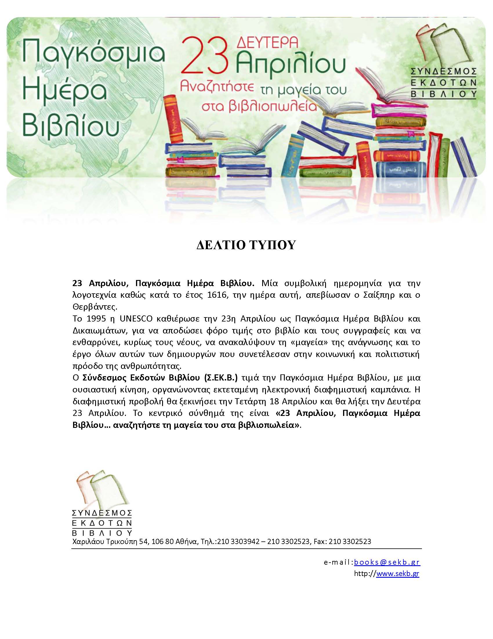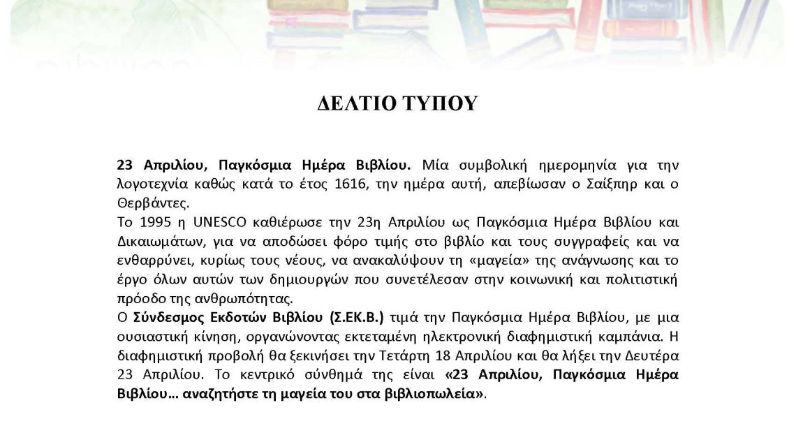 Παγκόσμια Ημέρα Βιβλίου, 23 Απριλίου