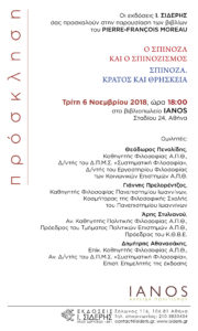 6-11-2018 | Παρουσίαση των βιβλίων του Pierre-François Moreau 30/10/2018 – Posted in: Τα νέα μας Δείτε το βίντεο από την παρουσίαση των βιβλίων: http://www.ibdb.gr/index_book.php?book=300299