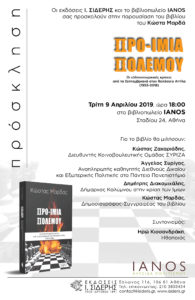 9-4-2019 | Παρουσίαση βιβλίου “Προ-Ίμια Πολέμου”