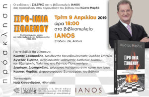 9-4-2019 | Παρουσίαση βιβλίου “ΠΡΟ-ΙΜΙΑ ΠΟΛΕΜΟΥ” ΙΑΝΟS