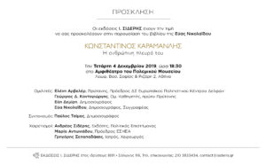 4-12-2019| Παρουσίαση βιβλίου Κων/νος Καραμανλής, Η ανθρώπινη πλευρά του 26/11/2019 – Posted in: Τα νέα μας