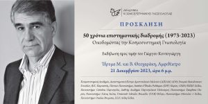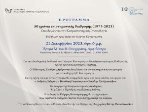 Εκδήλωση τιμής για τα 50 χρόνια (1973-2023) επιστημονικής δημιουργίας του καθηγητή Γιώργου Κοντογιώργη 14/12/2023 – Posted in: Τα νέα μας
